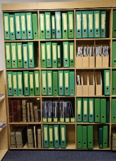 The HoL collection housed in purpose made cabinets; note also part of the Archive and the original ‘Chatwood’ ledgers. We also have the Milner minute books from the 19th century and the Tann serial number records.